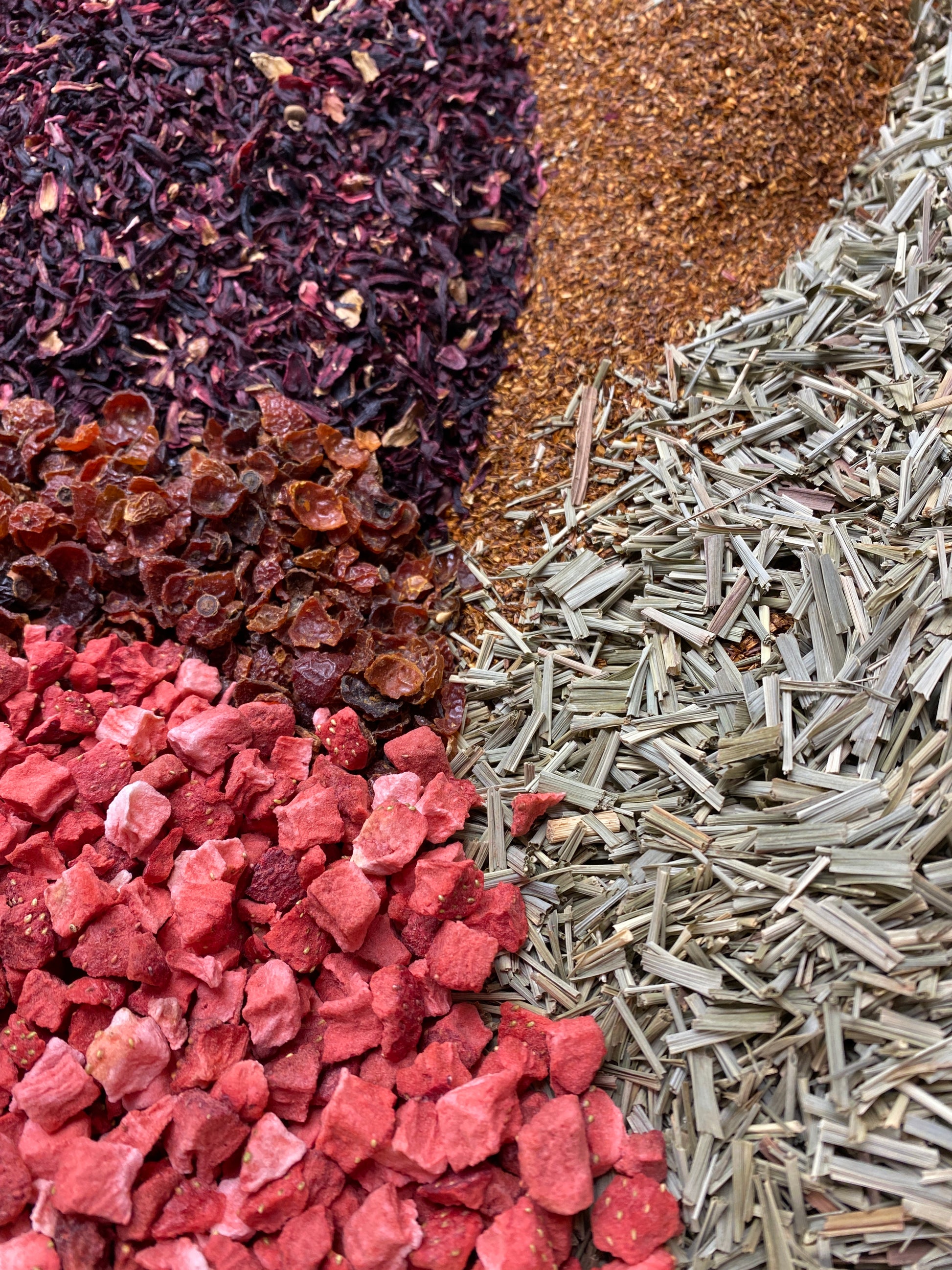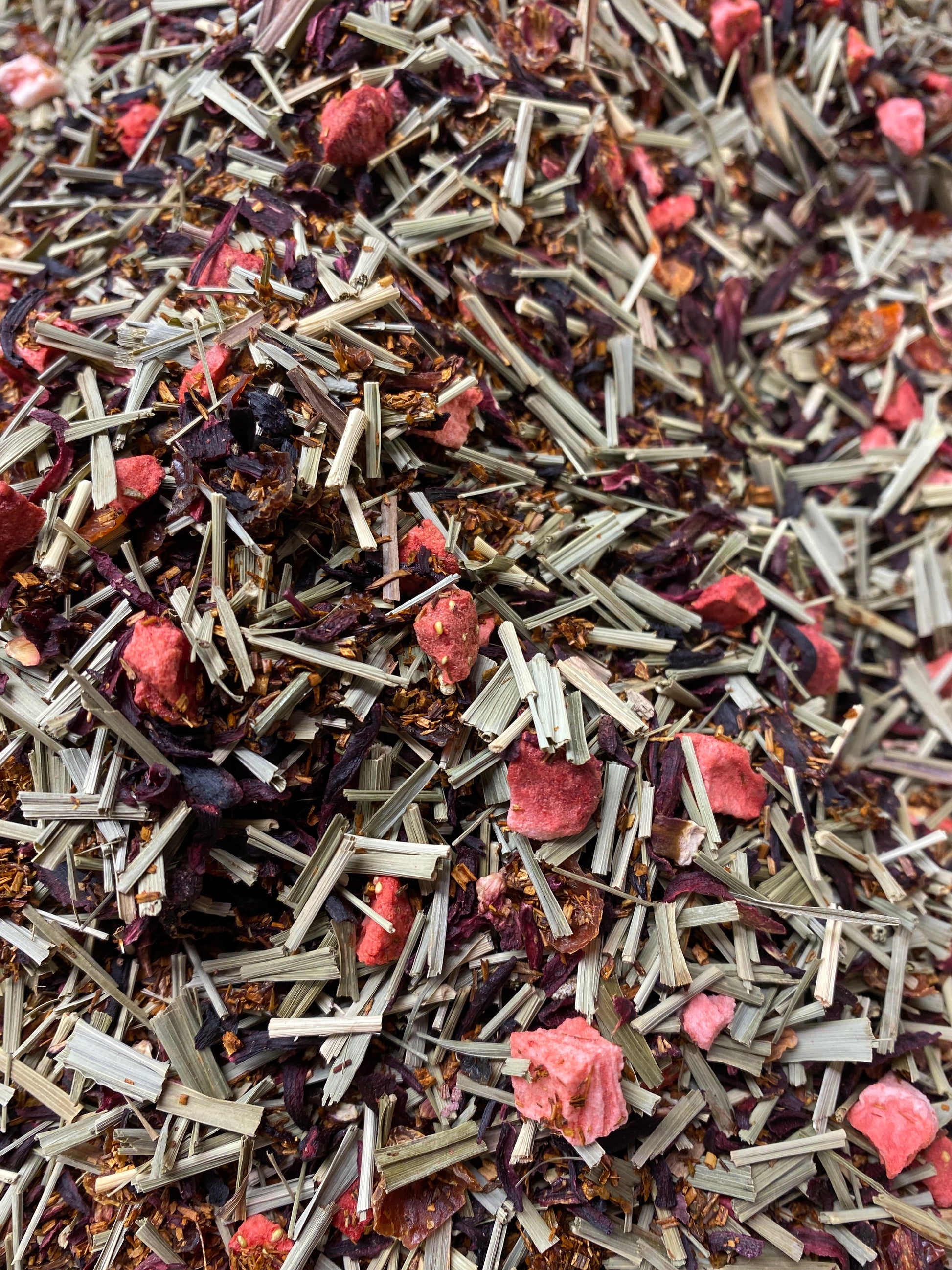 Rooibos, Hibiscus, Lemongrass, Rosehips, Strawberry, Natural Mango Flavor