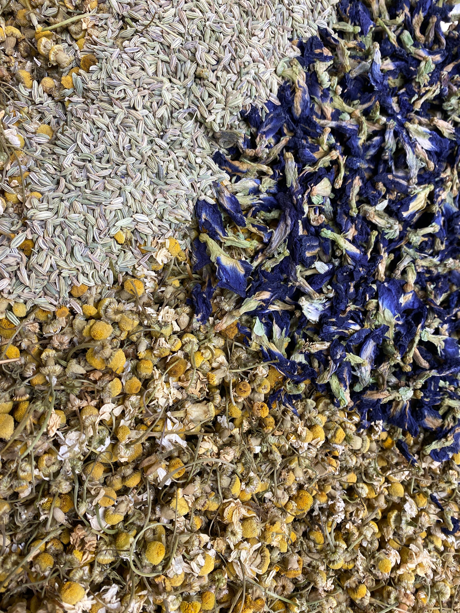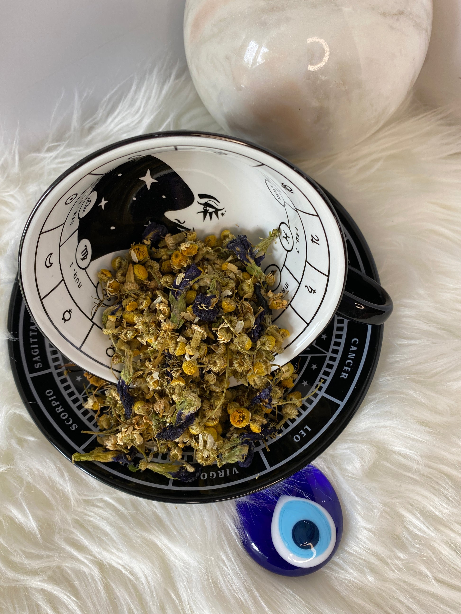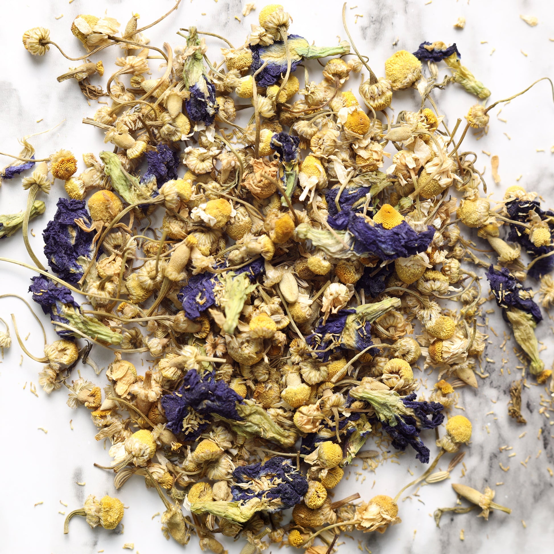 A calming blue herbal blend for rest, intuition, and gentle unwinding.