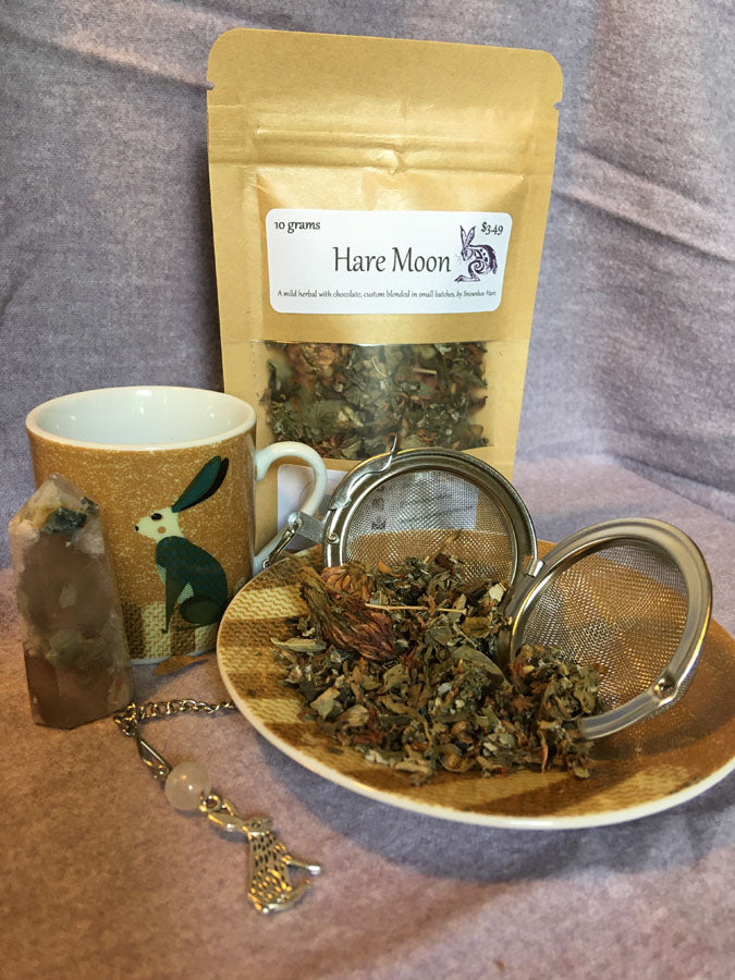 Hare Moon is a quiet, nurturing tea crafted with the spirit of the hare in mind—a creature of intuition, fertility, and sacred timing. Known for navigating hidden paths, the hare reminds us not to cling to one narrow route but to trust in the many ways forward. This tea was created to support those seeking security, abundance, and physical harmony, especially through life's shifting cycles.