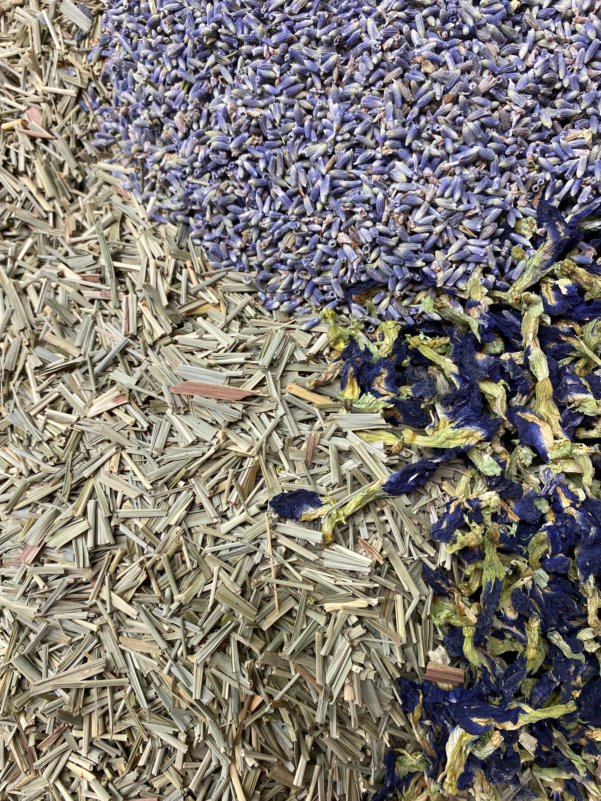 Lemongrass, Blue Pea Flower, Lavender, Natural Blueberry Flavoring